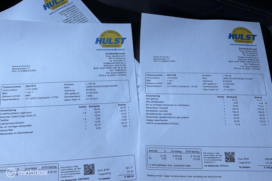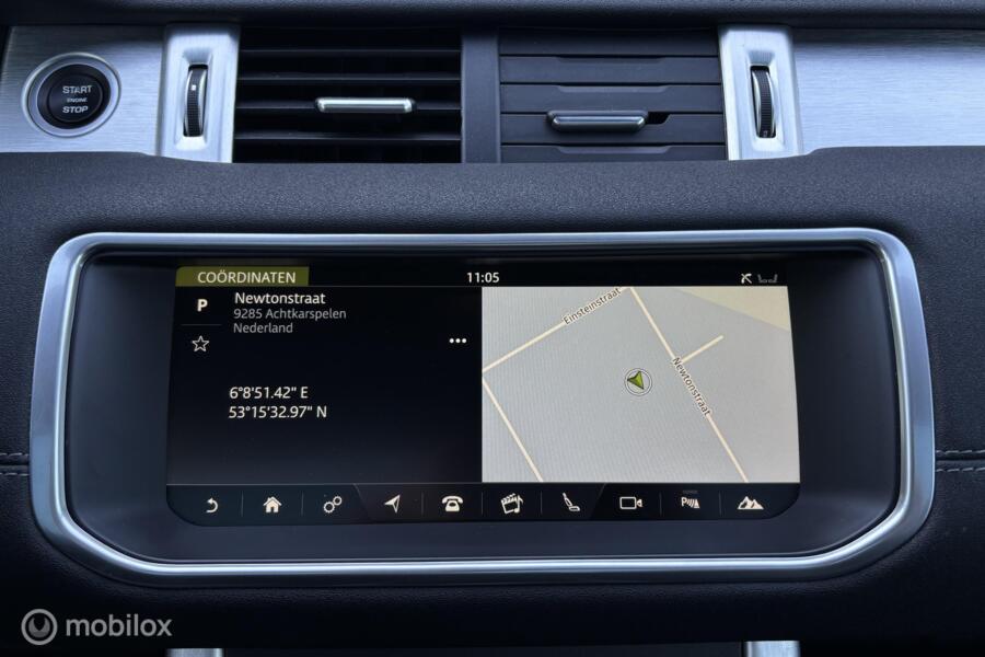 Rover Range Rover Evoque. De auto beschikt over o.a. cruise, navigatie, stoelverwarming, keyless start, parkeersensoren voor en achter, memory seats, clima, 360 graden camera, dodehoek detectie, multifunctioneel stuurwiel, apple carplay, panoramadak en lederen stoelen.